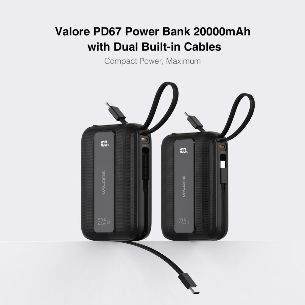 Valore 22.5W 20000mAh Power Bank with Dual Built-in Cables