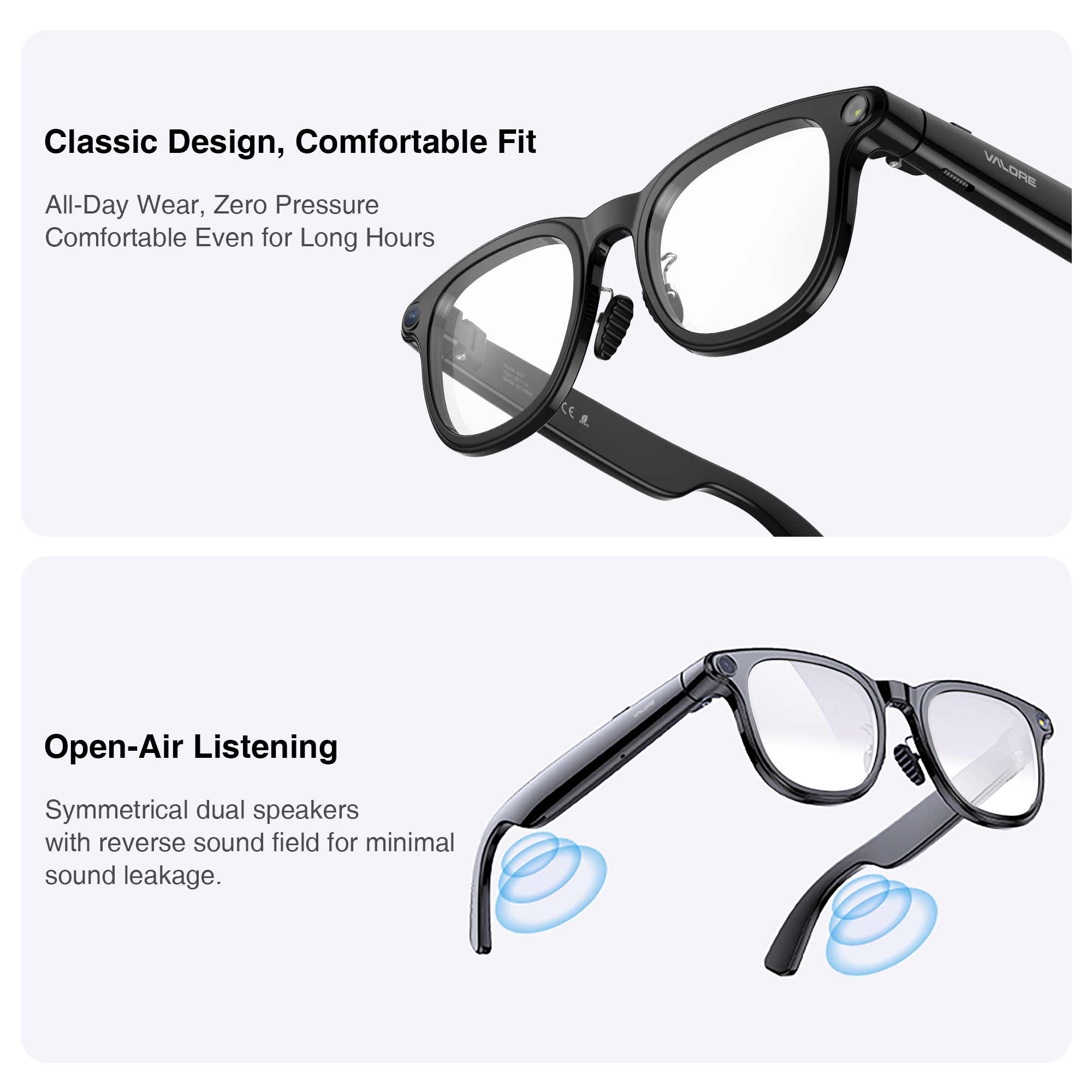 Switch effortlessly between clear and sunglasses lenses to match your environment in seconds. Powered by advanced AI image recognition, these smart glasses don’t just help you see — they understand what’s in front of you.