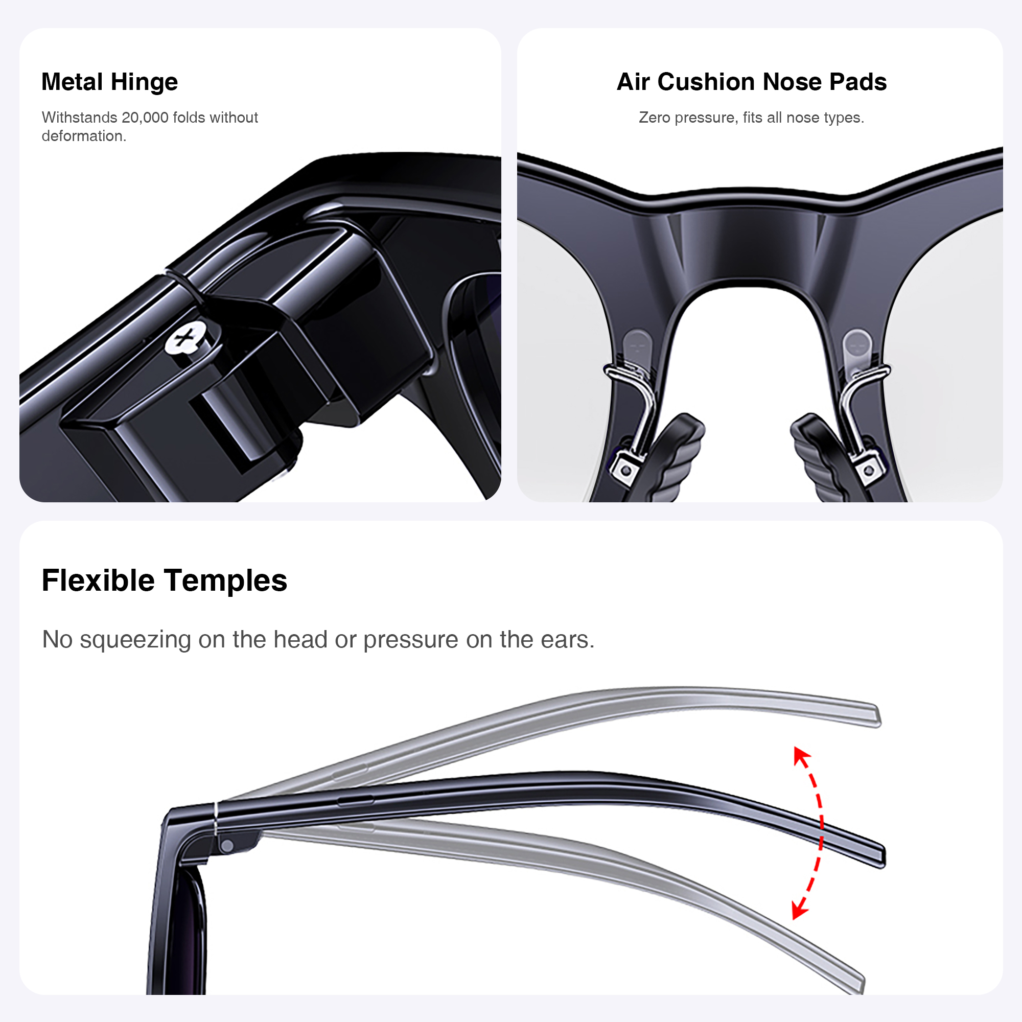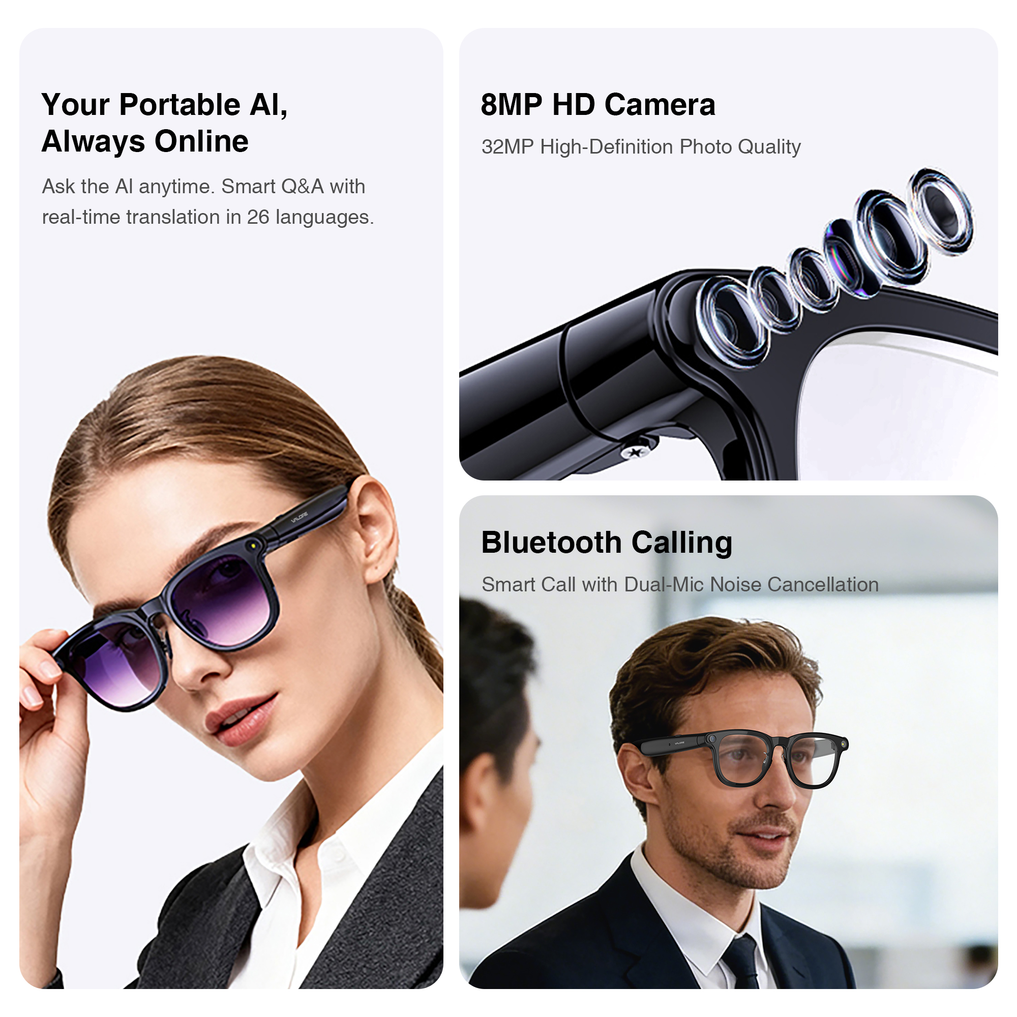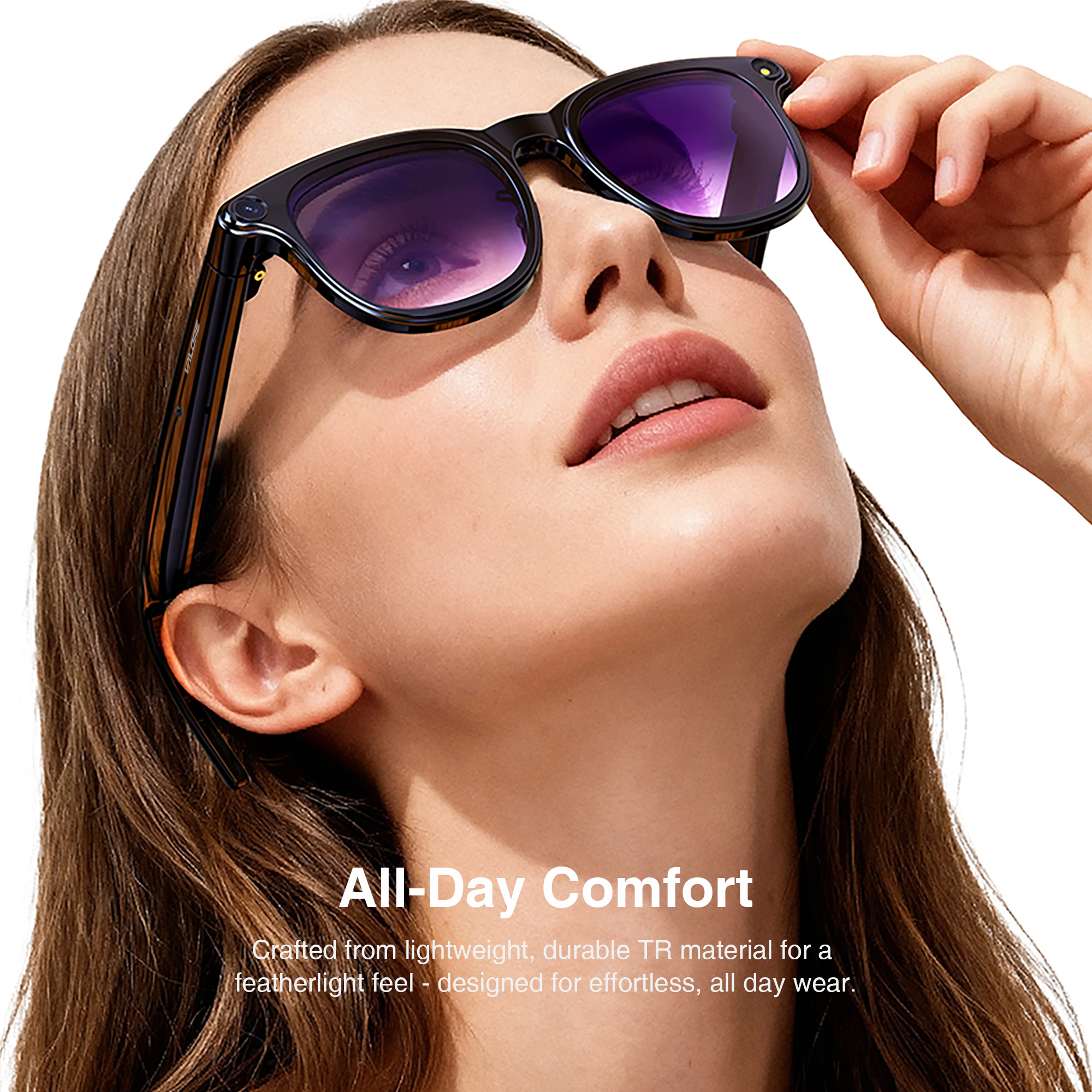 Switch effortlessly between clear and sunglasses lenses to match your environment in seconds. Powered by advanced AI image recognition, these smart glasses don’t just help you see — they understand what’s in front of you.