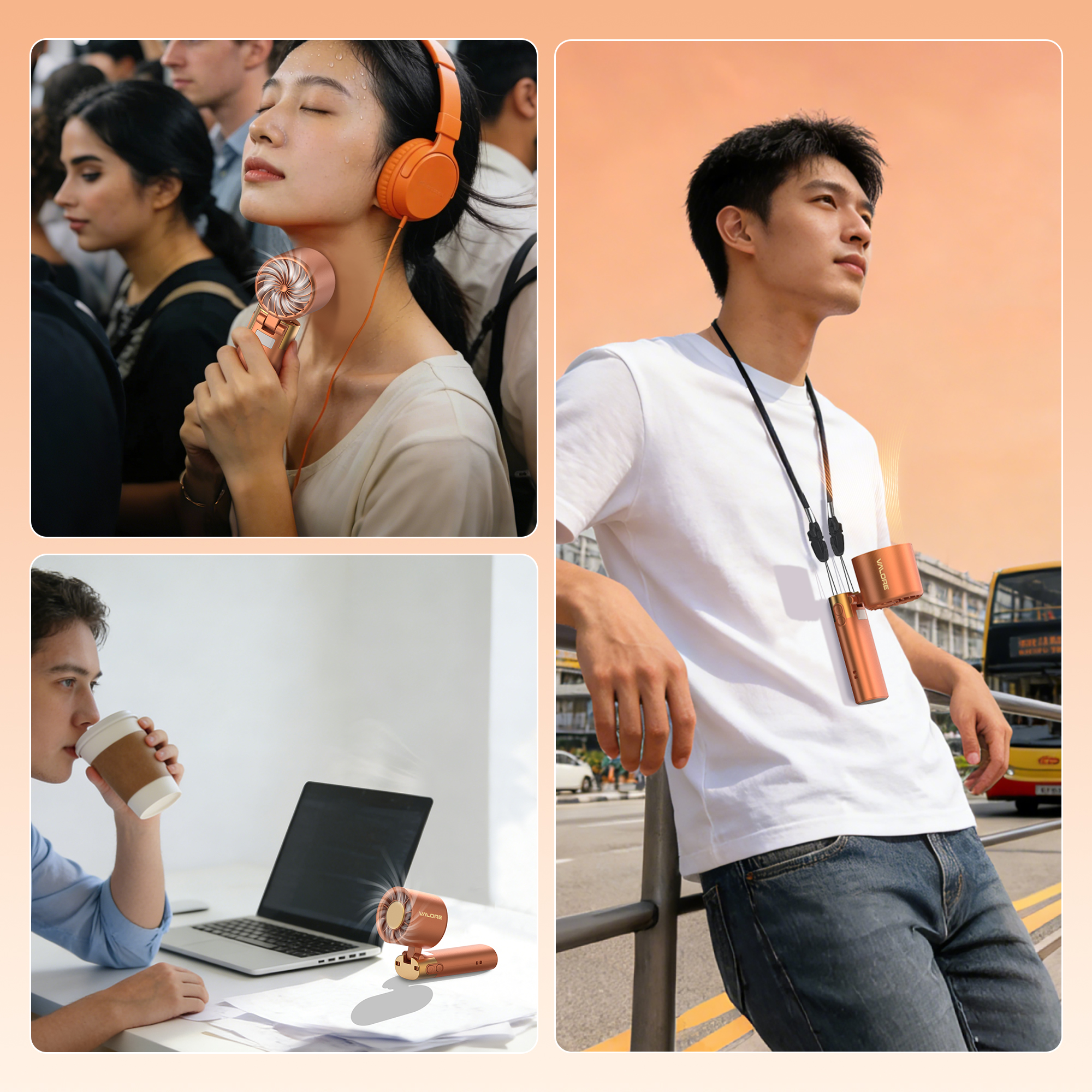 Designed for life on the move, this handheld cooling fan delivers instant relief wherever your day takes you—from crowded commutes and long work hours to outdoor adventures.