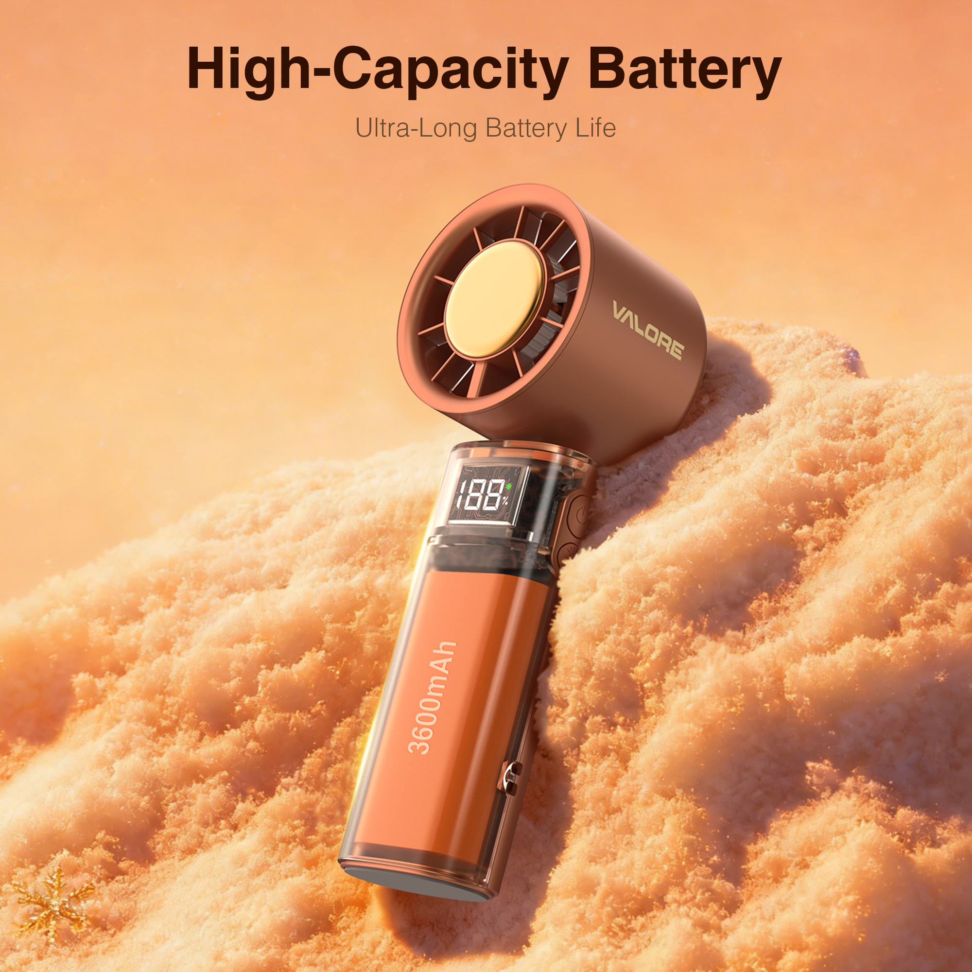 Powered by a 3600mAh high-capacity battery, this handheld cooling fan delivers up to 8 hours of continuous use on a single charge.