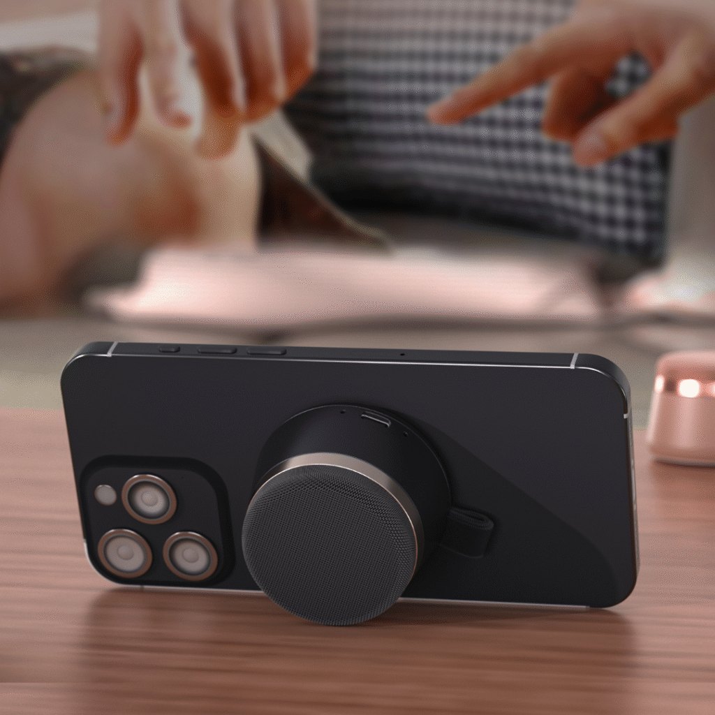 This smart magnetic speaker doubles as a phone holder, letting you enjoy hands-free viewing while delivering clear, powerful sound.