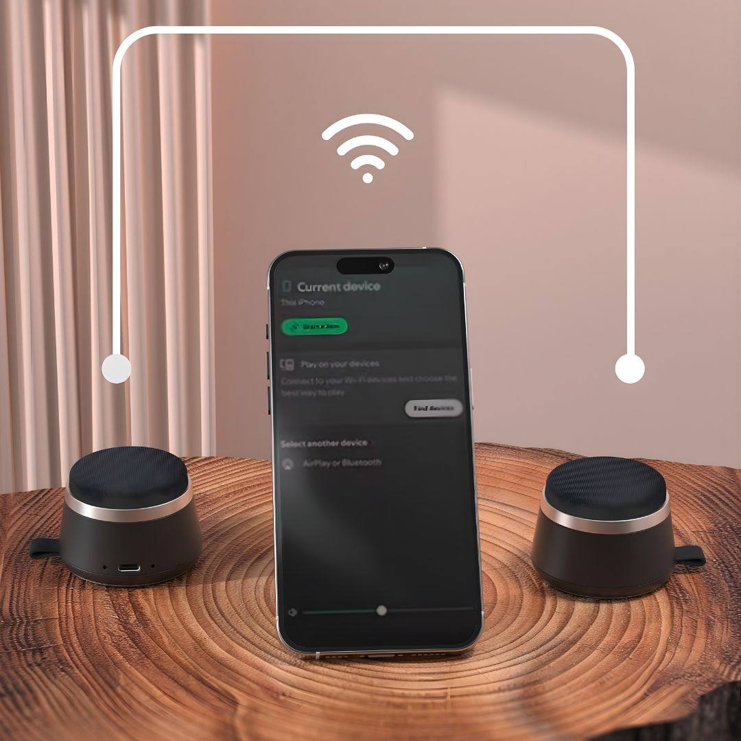 Pair two speakers together to enjoy immersive HD surround sound with wider audio coverage.
