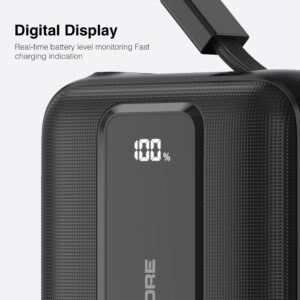 High-capacity portable charger with fast charging, dual USB-C cables and output.